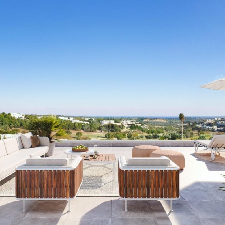 - Penthouses: spacious rooftop solariums with panoramic views of the golf course and the sea.