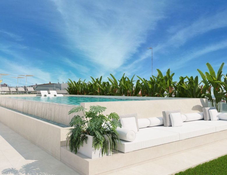Located along the prestigious stretch of Avenida Cervantes in the vibrant area of Guardamar del Segura, this new development offers an exceptional living experience merely 100 meters from the beach. Its prime location also provides residents with easy access to a range of nearby amenities. The property features a rooftop swimming pool and solarium, offering an exclusive relaxation area for its residents.