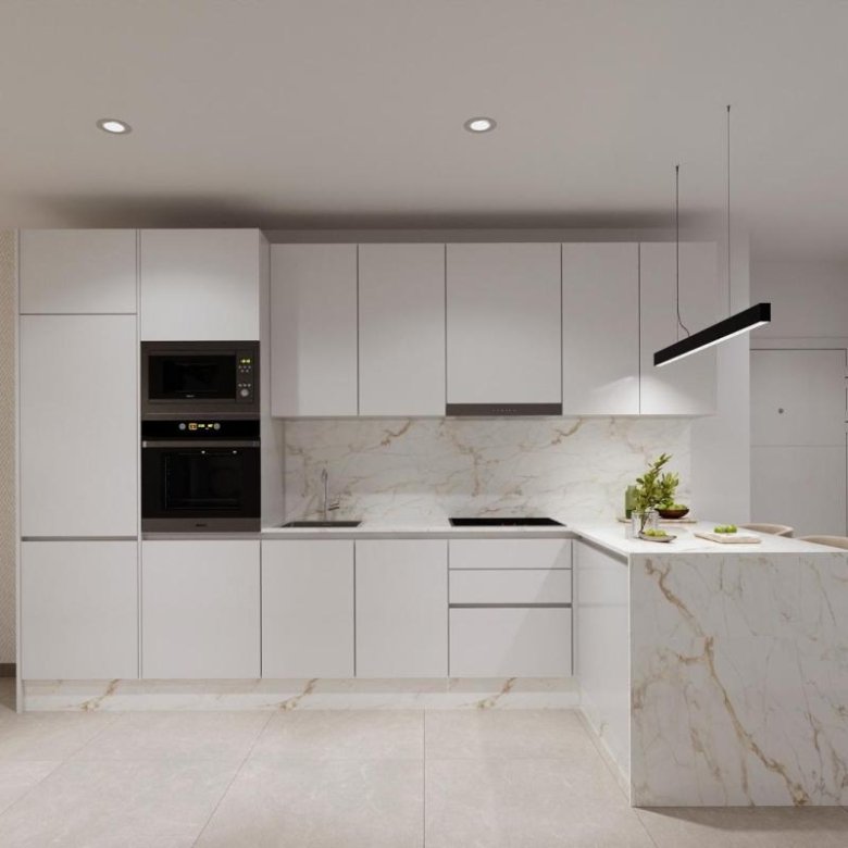 The apartments stand out with their bright and functional design, featuring open spaces integrating the living room and an American-style kitchen. You can choose between one or three-bedroom apartments, all equipped with two bathrooms, including an en-suite in the main bedroom. The living room provides access to a sunny terrace, perfect for enjoying the Mediterranean climate and pleasant views of the surroundings.