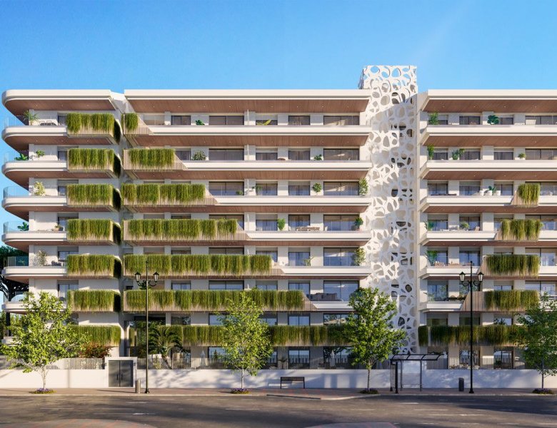 This is an exclusive residential complex featuring 116 newly constructed apartments, all designed with the international BREEAM® certification, known for its environmental excellence. Nestled in a prestigious area along the Costa del Sol, this complex is situated in the vibrant heart of Fuengirola, conveniently just a 20-minute drive from Málaga Airport to the east and from Marbella’s center to the west. Located merely 100 meters from the beach, it is surrounded by a wealth of services and shops, providing an ideal urban lifestyle.