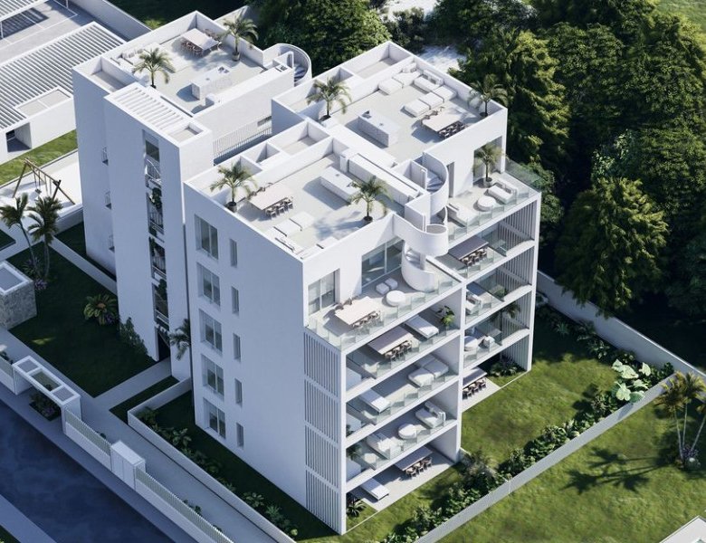 The complex boasts expansive gardens where you can bask in the Mediterranean climate, complemented by stunning swimming pools perfect for cooling off. Each apartment is accompanied by its own storage room for your belongings and a private parking space with a pergola to protect your vehicle.