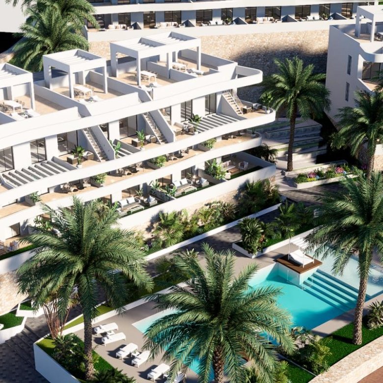 Discover an exceptional new residential community in the coastal charm of Finestrat, offering exquisite living spaces with 2 bedrooms and 2 bathrooms. These homes feature a spacious open floor plan, where panoramic views of the skyline and the stunning Mediterranean Sea are beautifully integrated through large lateral windows, filling the space with natural light.
