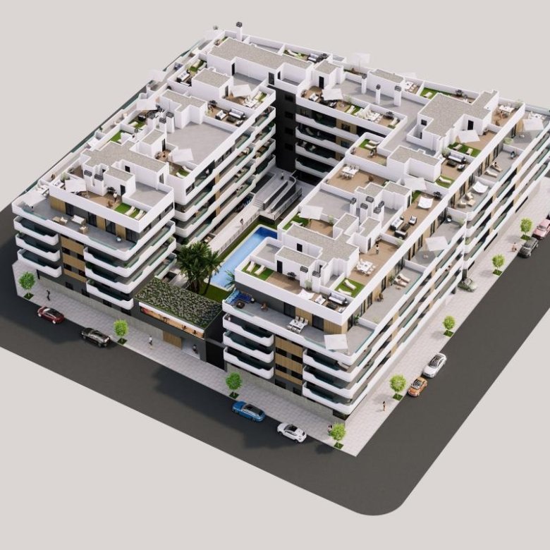 Discover the exceptional Complex, a modern gated residential complex located in the desirable area of Alicante, Santa Pola. The development features three-bedroom properties with two bathrooms, spread across four buildings with spacious landscaped communal areas. Residents can enjoy a pool, relaxation zone, and a gym, ensuring a lifestyle of comfort and leisure.