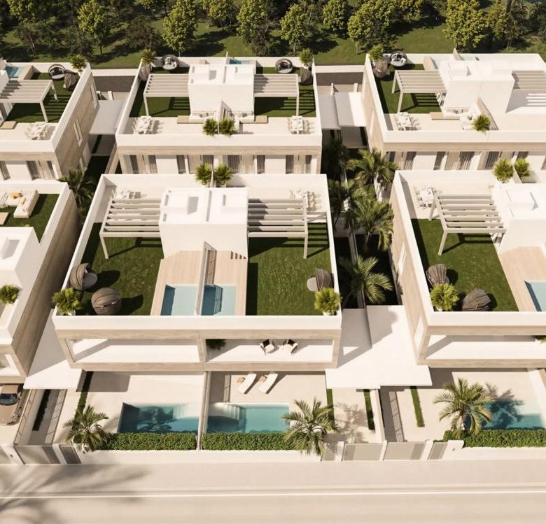 The complex comprises 17 apartments, 10 townhouses, 11 semi-detached villas (one fully independent), and 6 commercial premises, offering various types suitable for both permanent residence and investment.