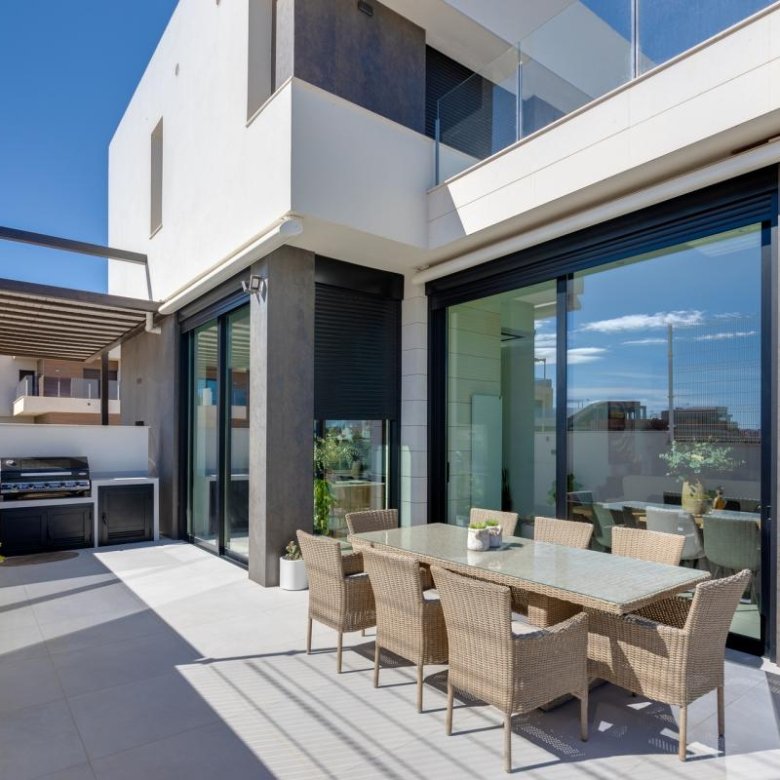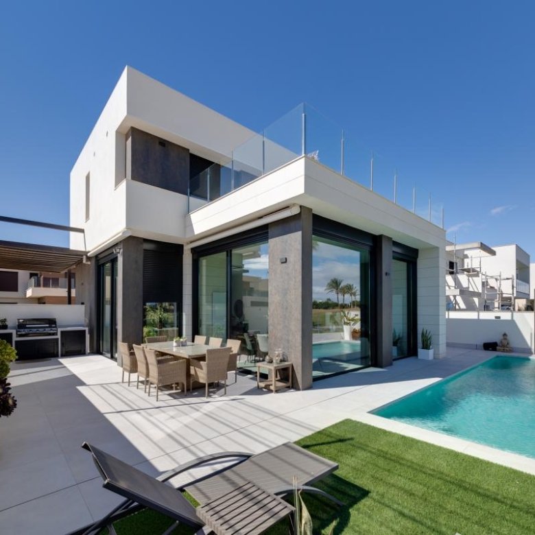 Welcome to an exclusive collection of six modern and luxurious villas, nestled in a prime location next to a golf course in Alicante’s Pilar de la Horadada. These single-story homes have been meticulously designed to offer unparalleled comfort, elegance, and functionality, perfect for those seeking a unique and refined lifestyle. With prices ranging from 535,000 € to 594,000 €, there’s an option for many discerning buyers.