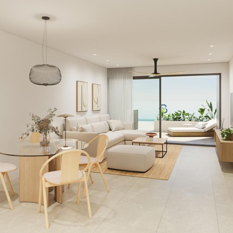 This new phase is located in Pilar de la Horadada and offers 12 apartments with fantastic communal areas. The residential complex includes private outdoor parking, a bicycle parking area with an electric charging station, spacious landscaped gardens, a changing room/toilet for added convenience, and a minimalist pool with a beach area equipped with sun loungers for residents’ enjoyment.