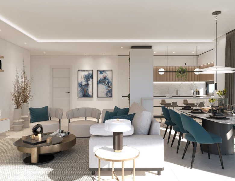 There is a wide range of property types to choose from, including apartments with 2 to 4 bedrooms. Options are available with private gardens or penthouses with private solariums. Each property comes with an included parking space and storage room, making it an excellent choice for both holidays and permanent residence. The properties are priced between 329,800 € and 460,000 €, with living spaces ranging from 74 m² to 146 m².