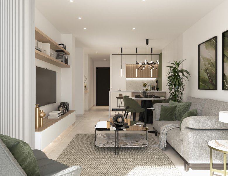 From a highly experienced developer in the area, we are pleased to present this newly launched residential project, just 500 meters from the sea in the sought-after Playa Flamenca district. This residential complex features beautiful communal pools, jacuzzis, and lush gardens. All essential amenities such as supermarkets, bars, and restaurants are within walking distance, located centrally in Orihuela Costa.