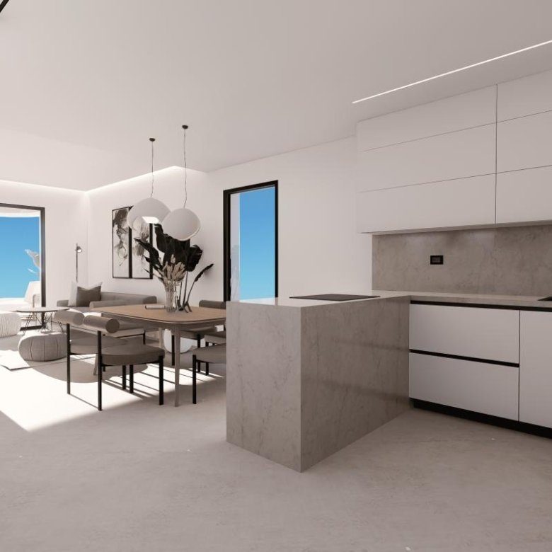 Discover an exceptional new residential community in the coastal charm of Finestrat, offering exquisite living spaces with 2 bedrooms and 2 bathrooms. These homes feature a spacious open floor plan, where panoramic views of the skyline and the stunning Mediterranean Sea are beautifully integrated through large lateral windows, filling the space with natural light.