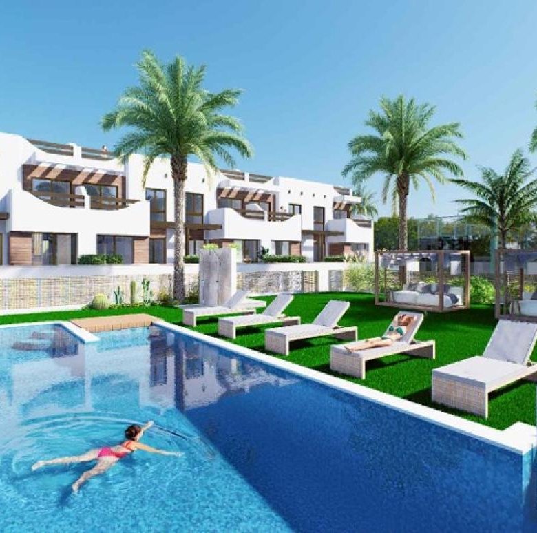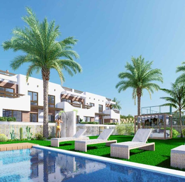 Discover an exciting new residential project close to the sandy shores of Alicante, Torrevieja. This development offers 64 exquisite bungalows, equipped with elevators, paddle courts, and a charming pool area. Perfectly crafted to balance comfort and style, you have the option of ground-floor bungalows with spacious terraces or penthouses featuring rooftop terraces with stunning sea views. Each bungalow boasts a modern open-plan design, making it an ideal choice whether you seek a permanent residence or a vacation retreat, just 200 meters from the coastline.