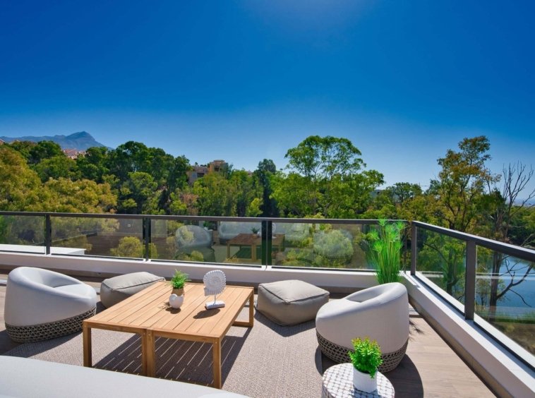 This new residential development features 98 apartments, elegantly arranged in low-rise buildings with a modern Mediterranean design. These residences, featuring three bedrooms, along with stunning penthouses and duplexes, are surrounded by meticulously landscaped gardens and offer access to four communal swimming pools.