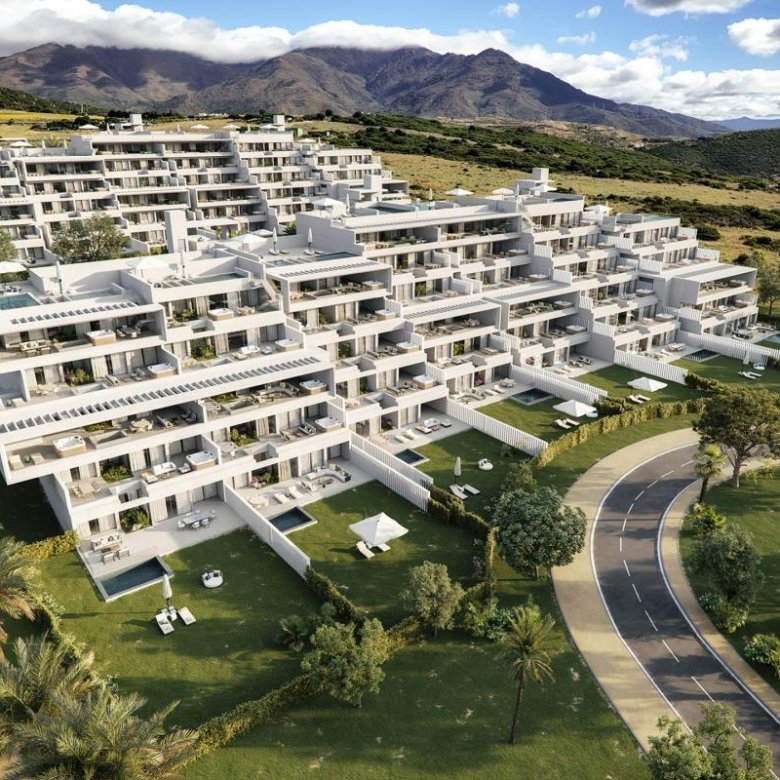 Complex is an innovative and elegant complex of 96 apartments, offering luxurious living spaces with 2 to 3 bedrooms. Each home boasts expansive interiors, high-quality finishes, large windows, and spacious terraces all facing west, providing exquisite views of the Mediterranean Sea. Ground floor units include private gardens and pools, while penthouses feature stunning solariums with optional pools.
