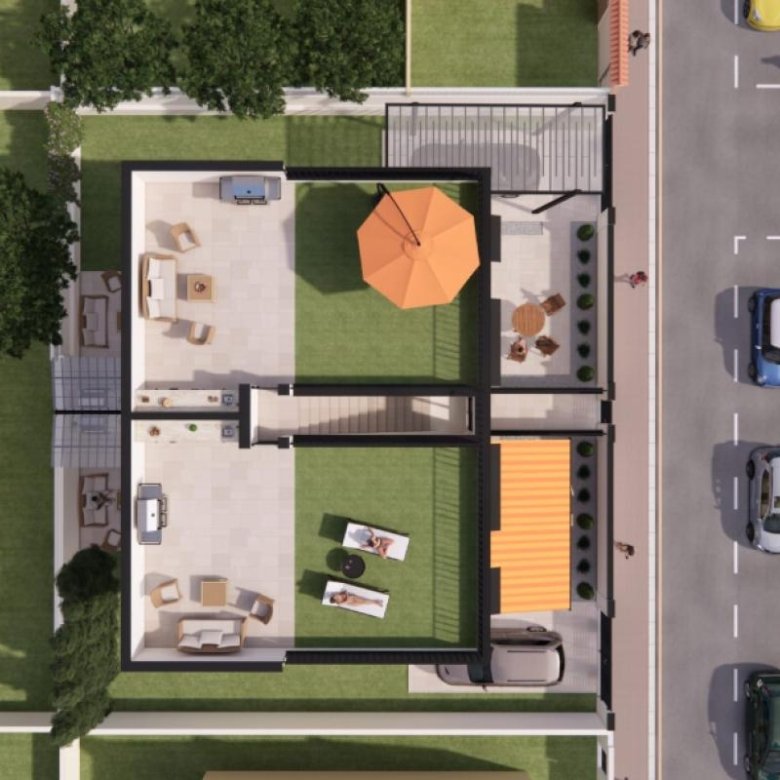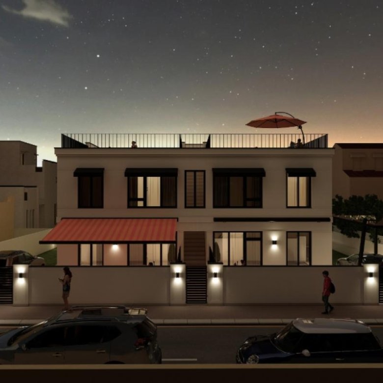 Each property has been carefully crafted with contemporary architecture and high-quality finishes. There are two ground floor bungalows, featuring spacious private gardens ideal for outdoor enjoyment, and two upper floor bungalows, boasting a private rooftop solarium, perfect for sunbathing, unwinding, or enjoying a sunset dinner with clear views.
