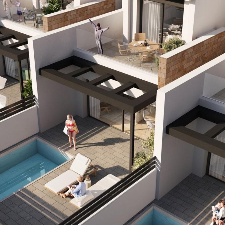 In the vibrant coastal town of Torrevieja, this exclusive residential complex offers 10 contemporary design townhouses, ideal for those seeking a perfect balance between comfort, modernity, and Mediterranean lifestyle. The development is just 1 km from the sea, allowing for year-round enjoyment of the beaches and favourable climate, with excellent connections due to the nearby airport, situated 42.2 km away.