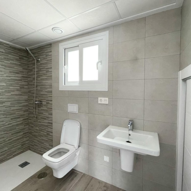 The ground floor exudes brightness thanks to large format windows that connect directly to the terrace and garden. The living-dining area integrates with a spacious open-plan kitchen, with the possibility to include all appliances. An independent toilet completes this floor, maintaining the privacy and functionality of the space. From here, access is provided to both the basement and the upper floor, facilitating circulation between levels.