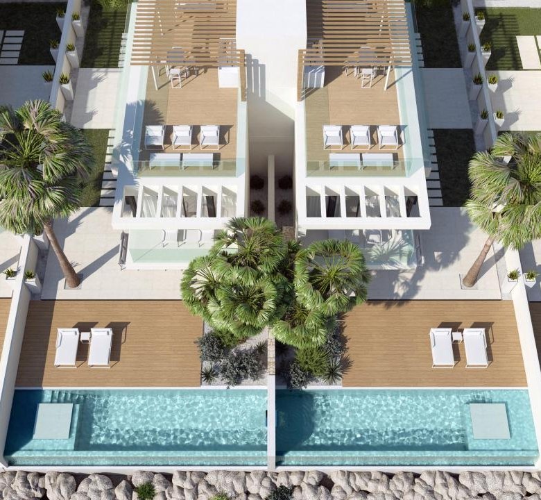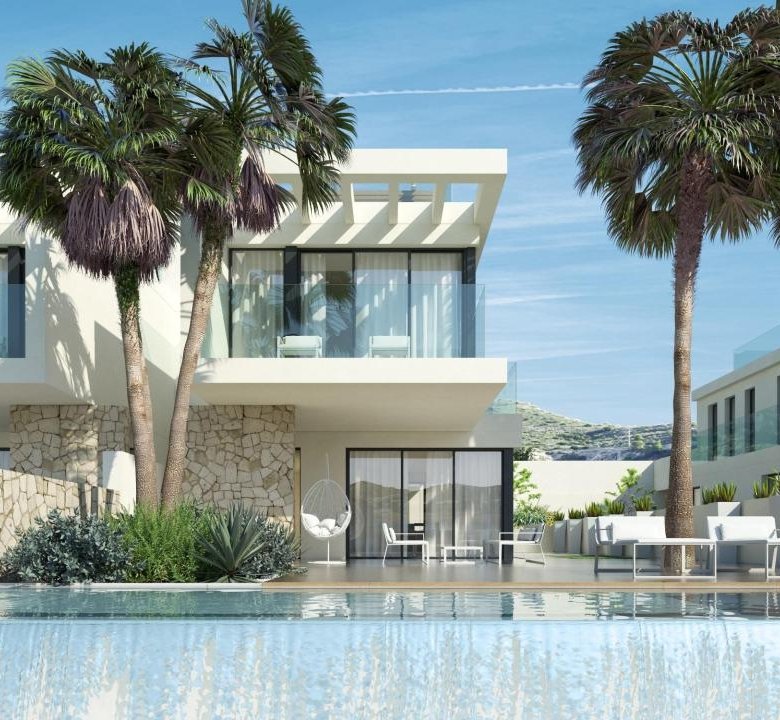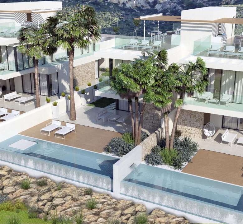 Located in Alicante’s Amoros neighborhood, the Complex chalets provide the perfect blend of modern architecture and natural surroundings. These semi-detached chalets include two connected homes, each spread across three floors. Residents enjoy both outdoor and indoor parking spaces, a private pool, terrace, rooftop solarium, basement, and storage room.