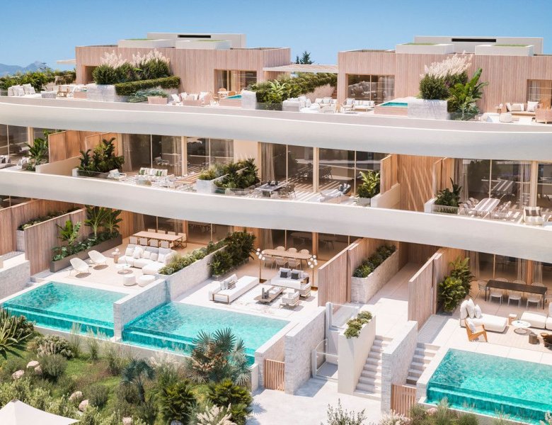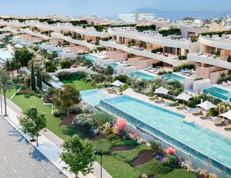 Perched a few kilometers east of the bustling city center is an exclusive development in a serene residential area praised for its coastline. This site boasts some of Marbella’s most breathtaking beaches, renowned for their expansive stretches and sophisticated ambiance, accented by elite clubs.