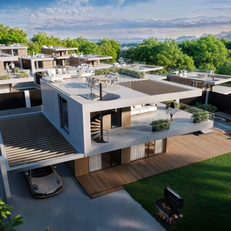 Each villa features a functional and bright layout, large windows, spacious areas, and a contemporary design that seamlessly integrates the interior and exterior. The properties offer:
