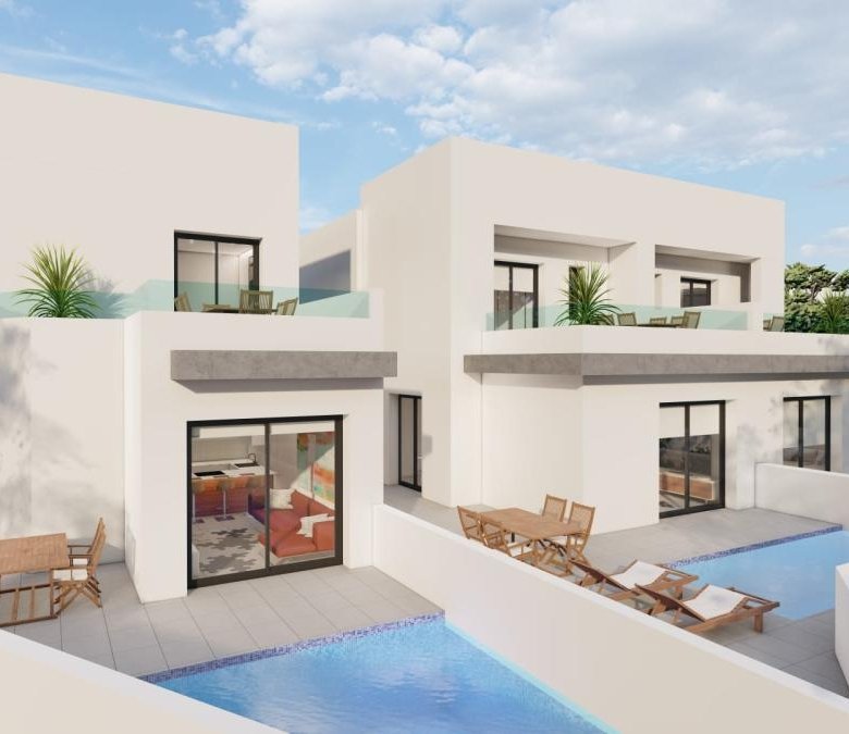 Discover this exclusive set of three newly built villas, both semi-detached and independent, located in the charming town of the South of Alicante. These elegant properties are designed with comfort, light, and privacy in mind, offering an exceptional living experience just minutes away from the beaches.