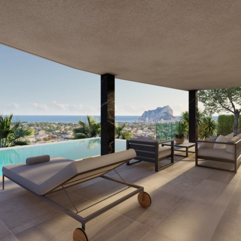 This luxury villa, with a built area of 273 m², is situated on a generous plot, offering stunning views of the sea, the iconic rock formation, and the town of Calpe.