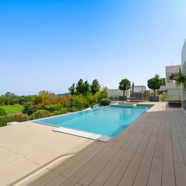 Exclusive contemporary villa located on the front line of a golf course, in one of the most sought-after residential areas of the city. Its modern architecture with clean lines, combined with large floor-to-ceiling windows, creates a seamless connection between indoor spaces and the natural surroundings, offering brightness and unobstructed views of the golf course throughout the day.