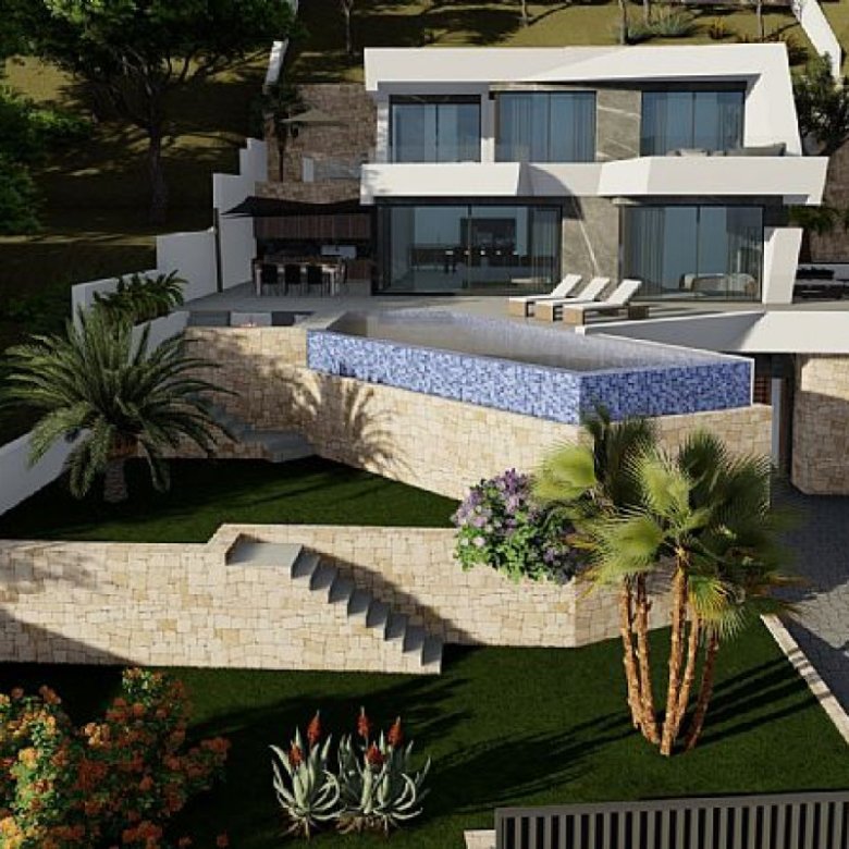 The villa showcases a bright and expansive living room, a separate dining area, and a state-of-the-art open kitchen. Spread over 489 m² and situated on a 770 m² plot, the property offers a perfect blend of style and space, with 375 m² dedicated to providing comfortable living quarters. Its high-end features include an advanced home automation system, a sleek elevator, a professionally designed garden, and a stunning infinity pool with a spacious terrace. Moreover, it offers a barbecue area and a tranquil chillout zone, ideal for enjoying the splendid outdoors. It is an exceptional choice for those seeking exclusivity and a serene atmosphere along the dazzling Costa Blanca.