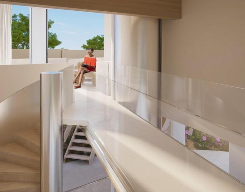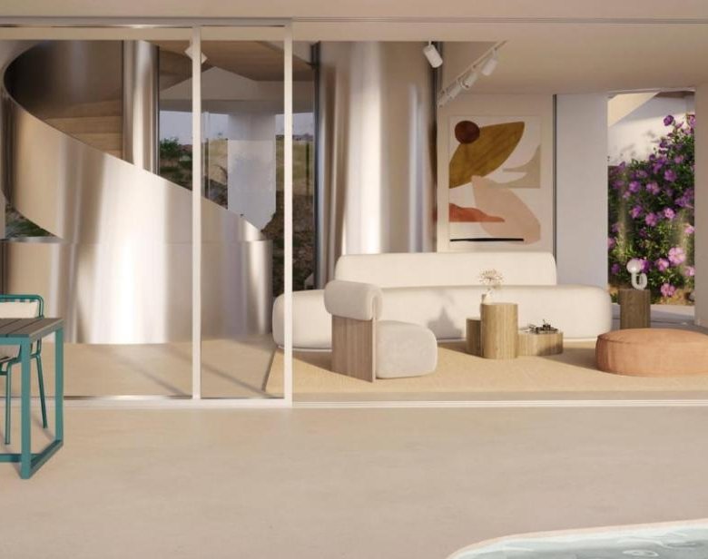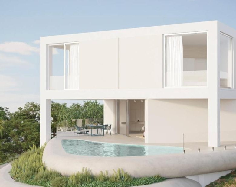 With a built area of 332 m² and spacious terraces of 120 m², the villa features 3 bedrooms and 3 bathrooms, all designed with high-quality materials and luxury finishes. The large windows flood each room with natural light, connecting the interior spaces with the surrounding Mediterranean environment.