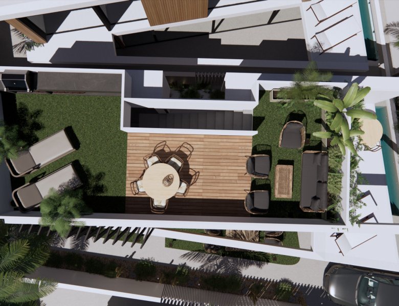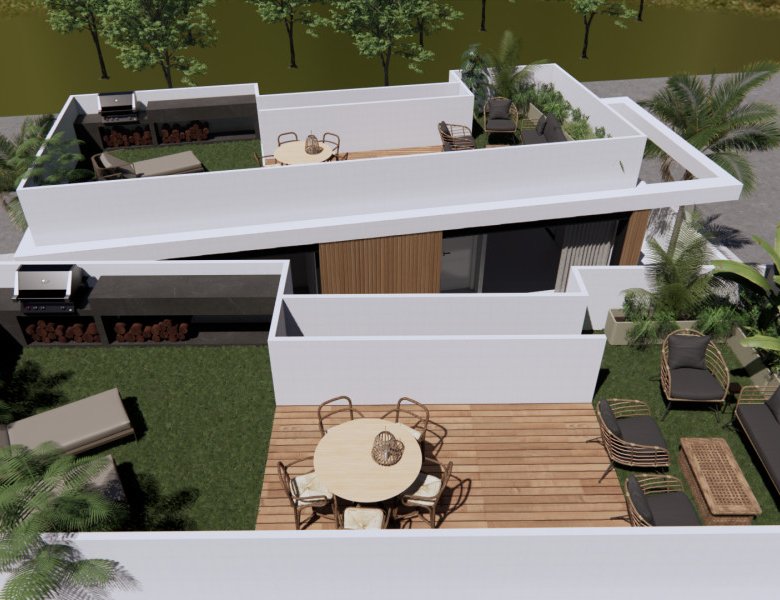 This development includes four independent villas on parcels of approximately 215 square meters. Each villa has a built area ranging between 130 square meters and 258 square meters. Designed with contemporary living in mind, these homes boast a dual-level floor plan, a rooftop solarium, and the optional addition of a basement at an extra cost. Enjoy your private garden with a swimming pool and an allocated parking space, making these villas an exceptional choice for both relaxation and entertaining.