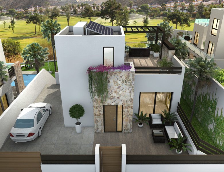 Discover the exquisite luxury villa situated in the prime golf course location. With a private elevator reaching all levels, the villa offers terraces with sweeping golf course views, a sports area, sauna, and a private pool. This stunning property in Alicante, Rojales ranges from €698,000 to €787,000, boasting a spacious interior of 122 m² to 124 m² with three bedrooms.