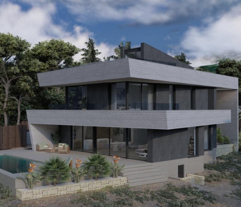 The property is situated on an ample plot of nearly 1,400 m², with a constructed area of almost 500 m² and spectacular terraces inviting year-round enjoyment of the climate. The residence boasts four en-suite bedrooms and five bathrooms, offering the utmost comfort for both family and guests. Each space has been crafted to enhance natural light, a connection with the outdoors, and a sense of expansiveness.