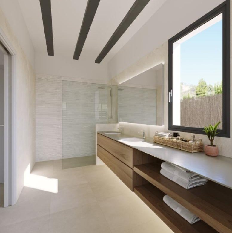 Each villa combines clean architectural lines with large windows, allowing you to enjoy natural light and privileged views of the Sierra de Aitana. The interiors are arranged with 3 or 4 bedrooms and between 2 and 3 bathrooms, depending on the type, with built areas ranging between 130 m² and 178 m², plus generous private terraces of up to 54 m² ideal for outdoor enjoyment.