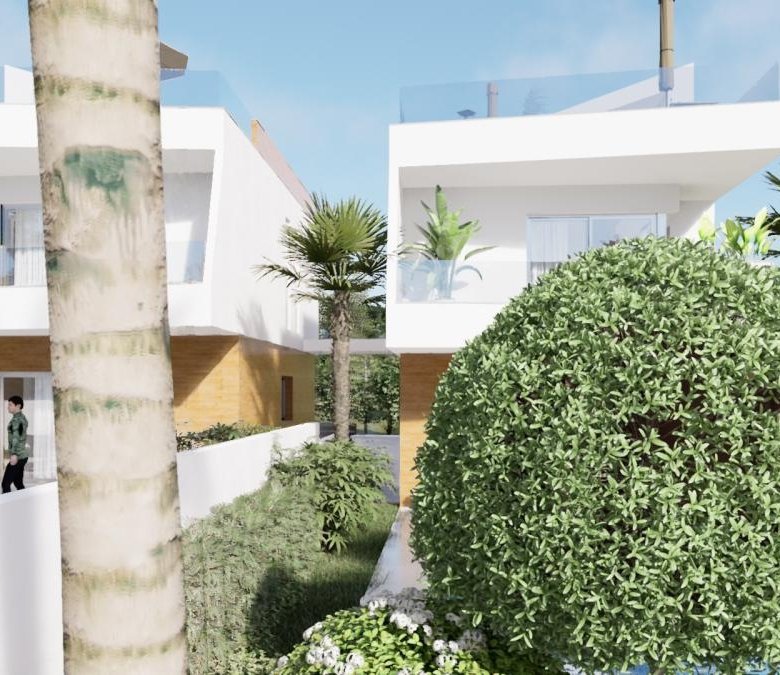 Each villa spans two floors, including a splendid rooftop solarium, and is designed for luxurious living. The ground floor encompasses an open-plan living and dining area, a fully equipped kitchen, a master bedroom, and a complete bathroom. The first floor boasts a master bedroom with an en-suite bathroom, an additional bedroom with two beds, and another full bathroom. The rooftop solarium is perfect for entertaining with its convenient summer kitchen.