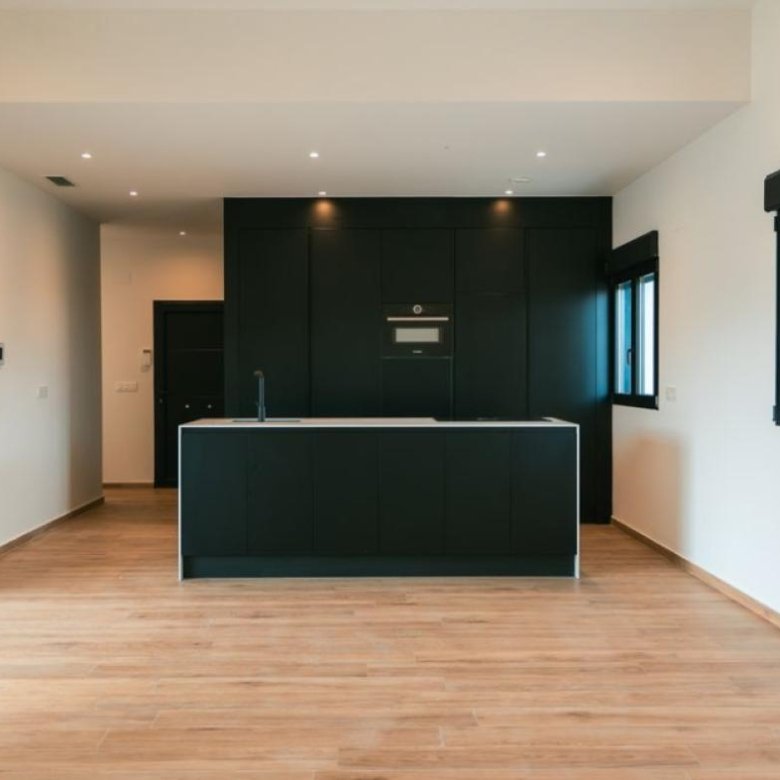 You can personalise your kitchen and flooring, choose finishes to your liking, and include appliances and light fixtures from leading brands. The open-plan living room connects to the outdoor area, perfect for creating your own private oasis on the large plot included in the price.