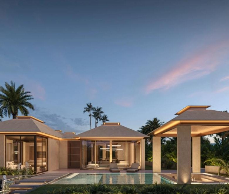 The villa features five spacious bedrooms, all with en-suite bathrooms, plus two additional guest toilets, distributed over two levels to offer maximum privacy and functionality. The master suite stands out with its expansive dressing room, designer bathroom, and relaxing views of the garden and pool.